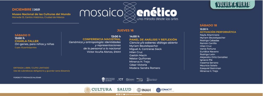 Impartido por el equipo de Mosaico genético en México, dirigido a niñxs y jóvenes para conocer qué es el ADN y cómo nos ayuda a estudiar los orígenes de nuestra especie, desde las migraciones humanas hasta los últimos avances tecnológicos, a través de restos fósiles, registros arqueológicos y los estudios genéticos.